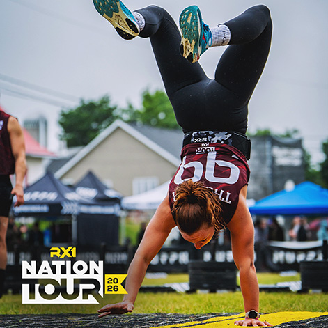 Participe au Nation Tour RX1 en t’inscrivant à notre série d’événements à mouvements fonctionnels qui se déroule dans plusieurs régions du Québec.